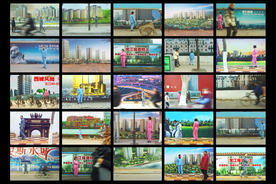 - Grosse Bauzäune mit riesigen Bildsujets kündigen die moderne urbane Zukunft Chinesischer Städte an: Diese Plakate orientieren sich häufig an bourgeoisen, westlichen Bildern. Sie bilden eine eigene Stadt in der Stadt.